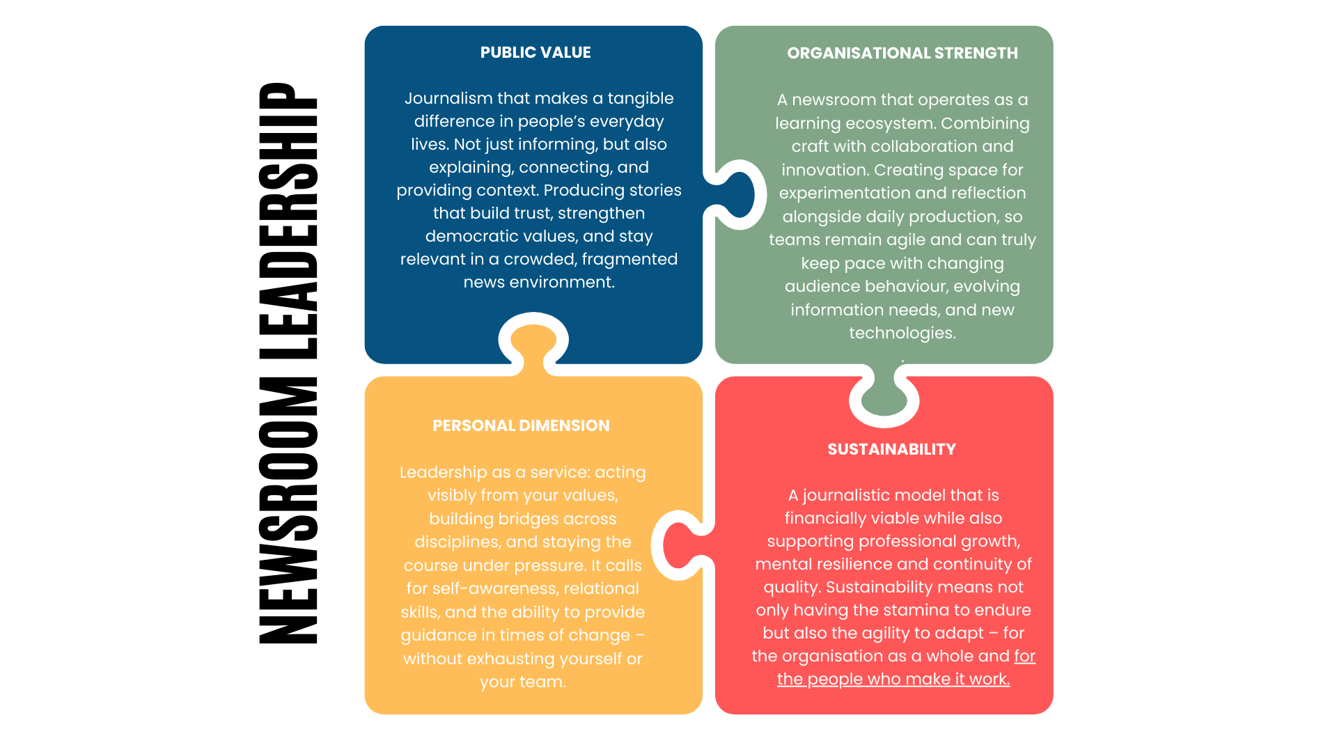 Leadership shapes what takes off in newsrooms and what gets stuck. Who feels heard and who doesn’t. How journalism evolves – or stands still. And ultimately, the role journalism plays in people’s lives.